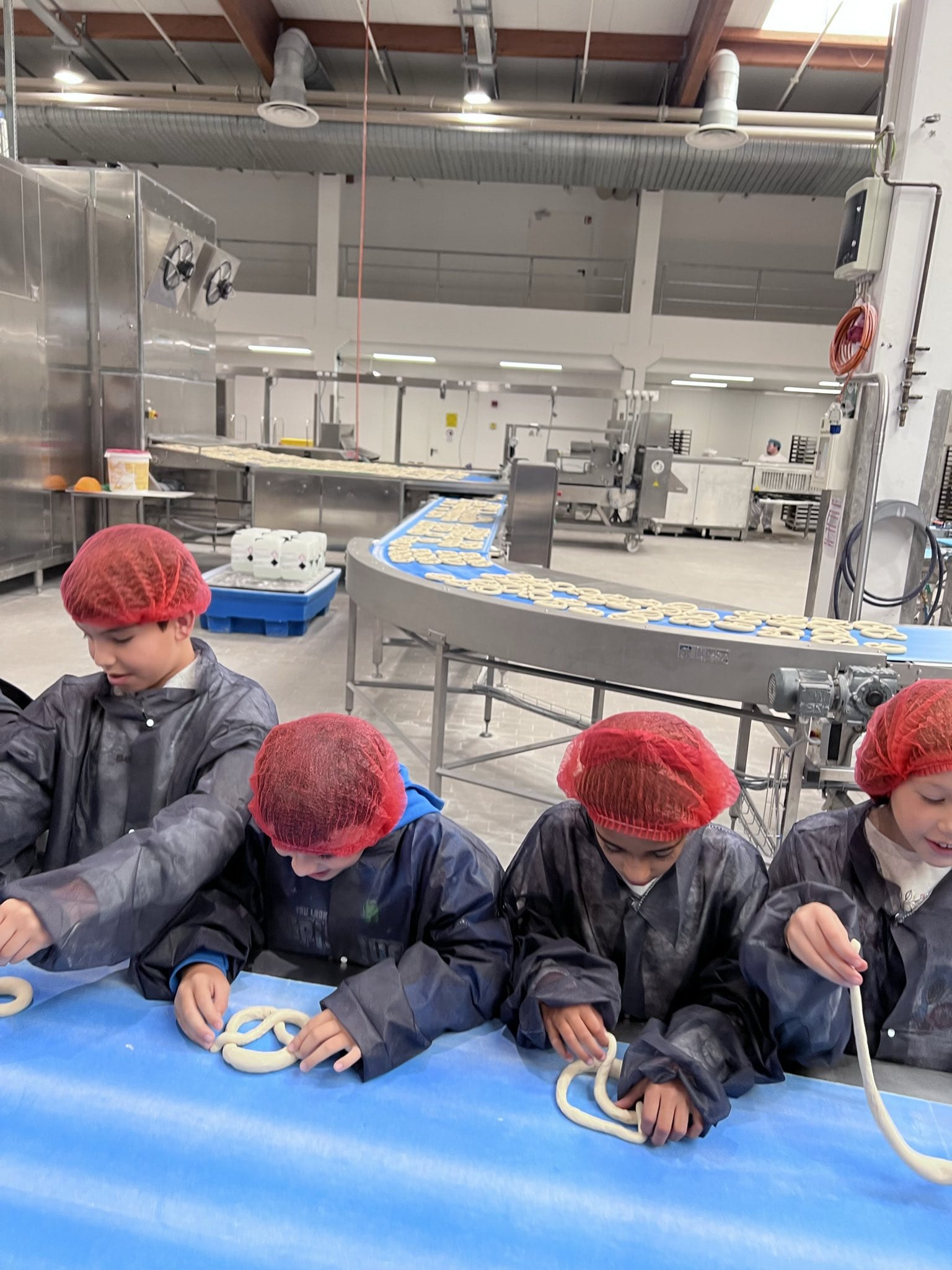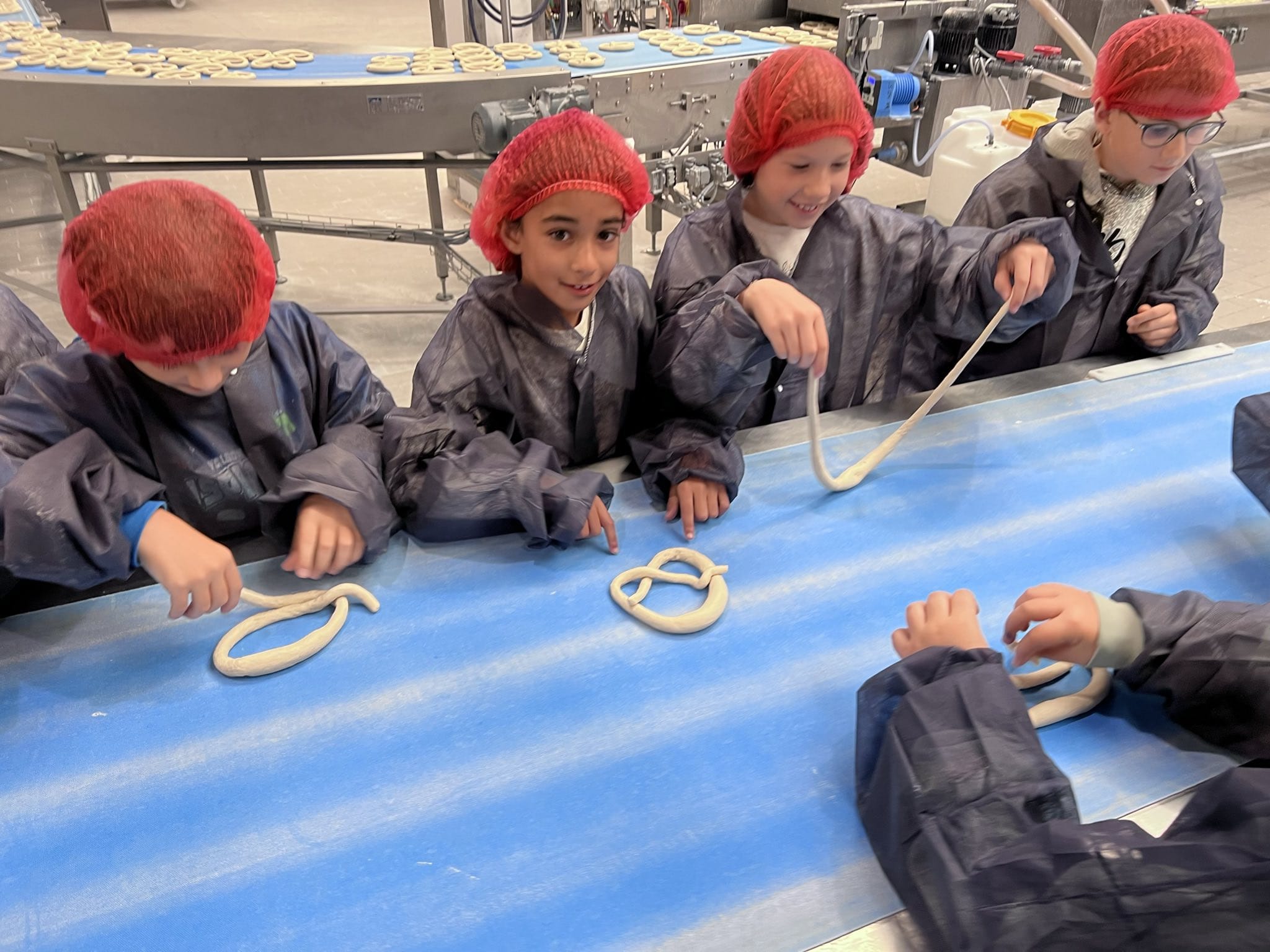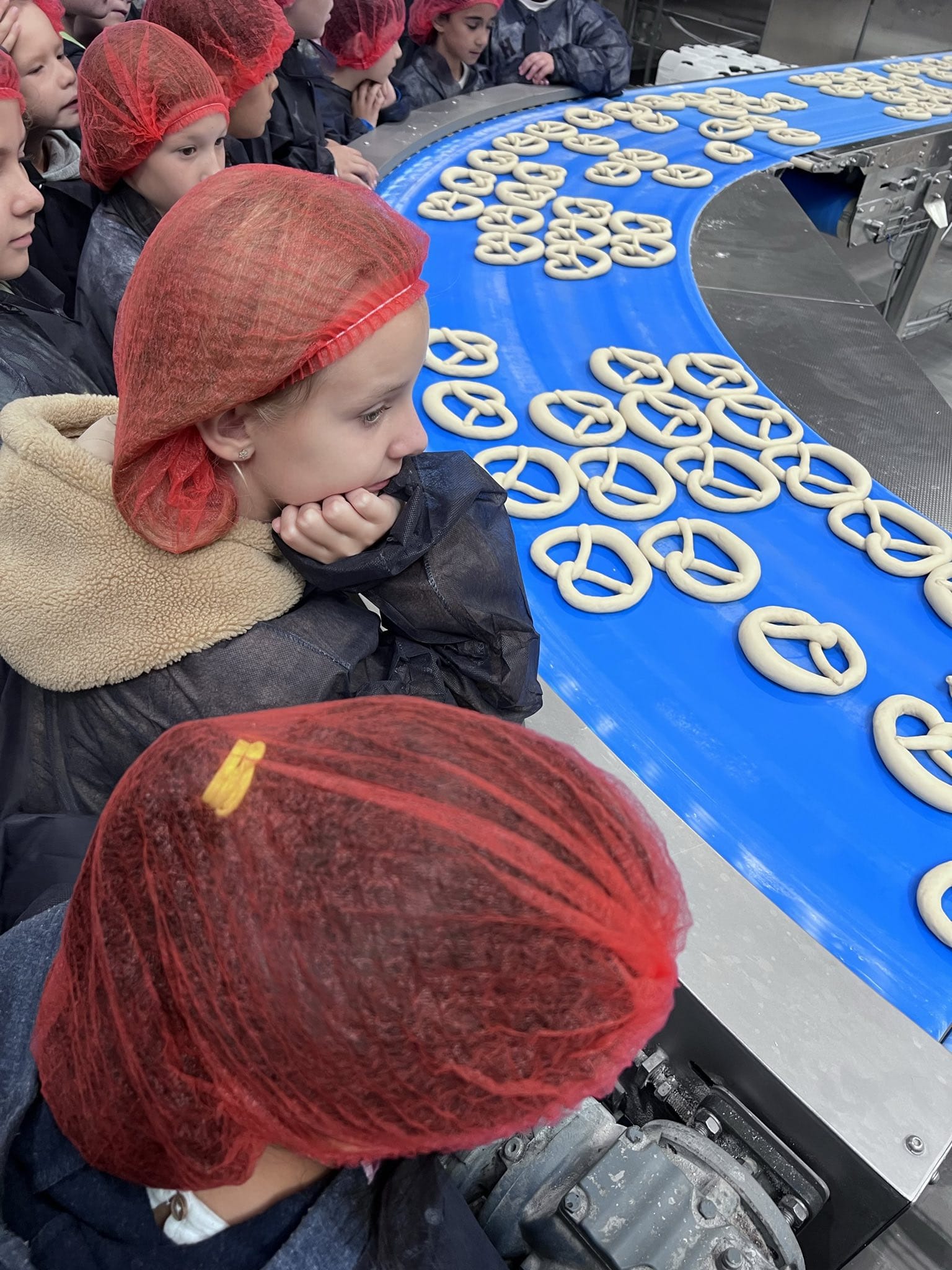 Unsere 4. Klassen besuchten am 17.09.2025 die Produktion der Wasgau-Bäckerei. Wir durften viele interessante Produktionsschritte hautnah erkunden. Leckere Kuchen, Brote und Brötchen wurden direkt vor unseren Augen hergestellt. Brezeln „knoten“ ist schwerer als es aussieht… Und zum Schluss durfte jeder eine warme Brezel probieren. Lecker!!!
