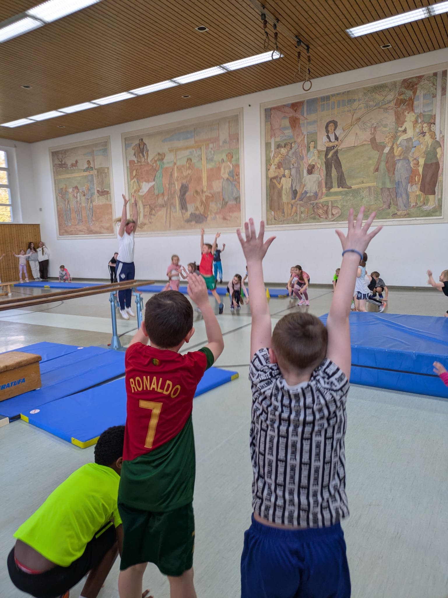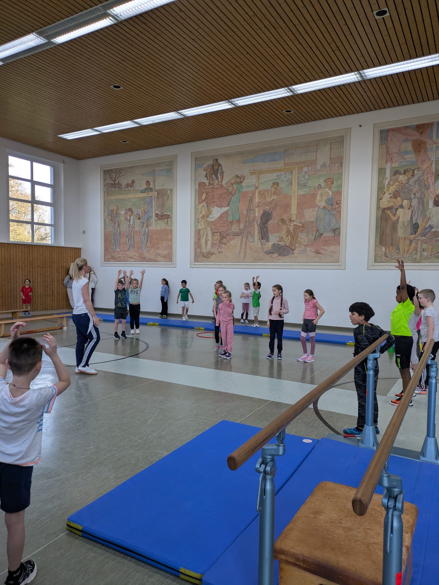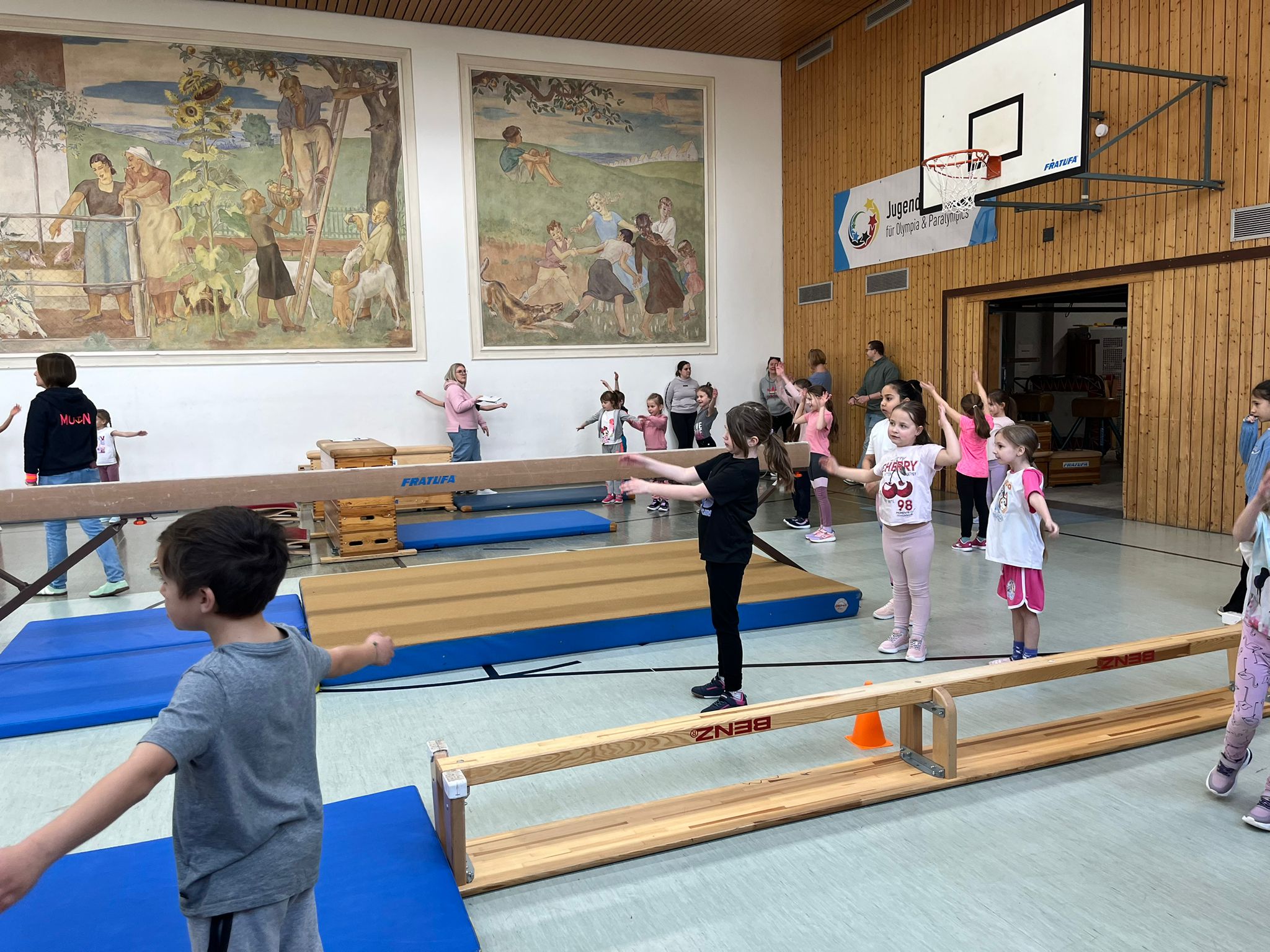 Am Donnerstag, dem 19.3.2026 fanden unsere Bundesjugendspiele im Geräteturnen statt. Alle Turnerinnen und Turner hatten in den vorangegangenen Wochen fleißig geübt und stellten nach einer gemeinsamen Aufwärmphase stolz ihr Können unter Beweis. Am Barren, am Boden, beim Balancieren, am Sprung sowie am Reck wurden altersgerechte Übungen gezeigt.