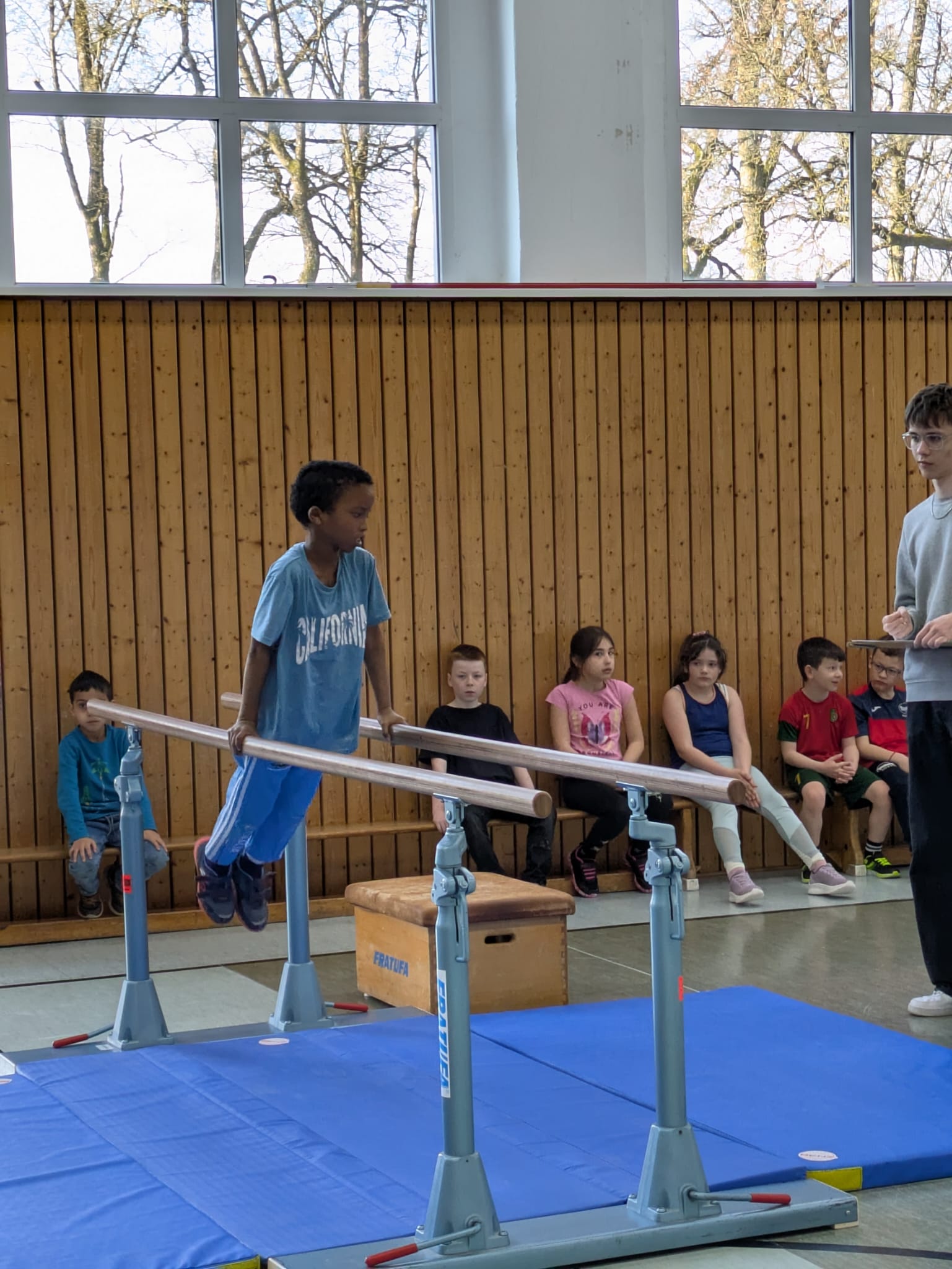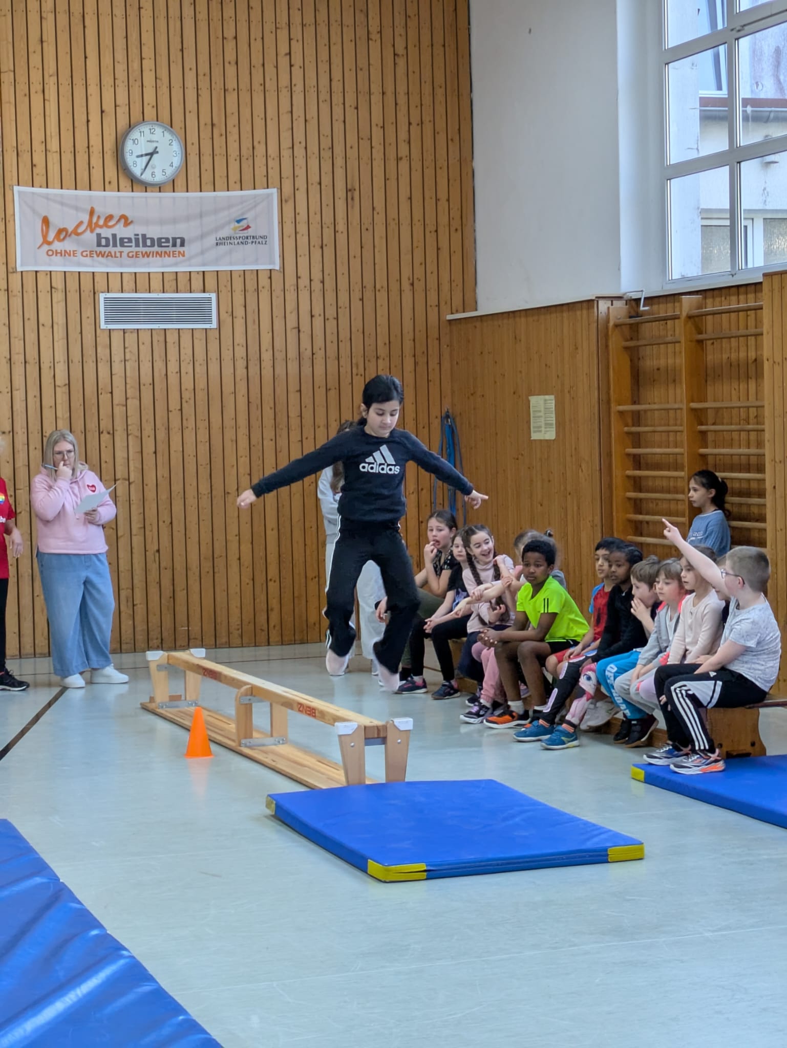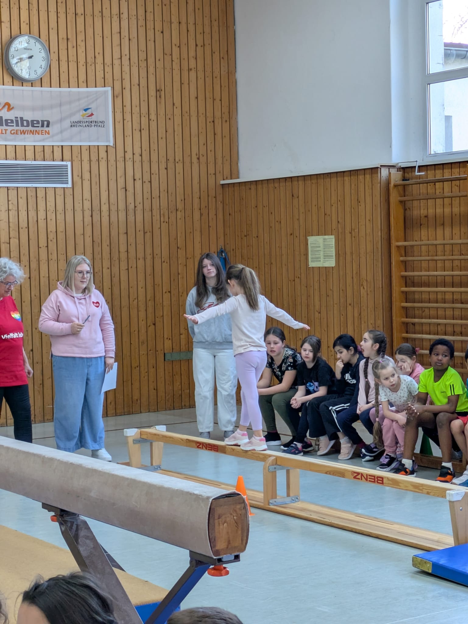 Am Donnerstag, dem 19.3.2026 fanden unsere Bundesjugendspiele im Geräteturnen statt. Alle Turnerinnen und Turner hatten in den vorangegangenen Wochen fleißig geübt und stellten nach einer gemeinsamen Aufwärmphase stolz ihr Können unter Beweis. Am Barren, am Boden, beim Balancieren, am Sprung sowie am Reck wurden altersgerechte Übungen gezeigt.